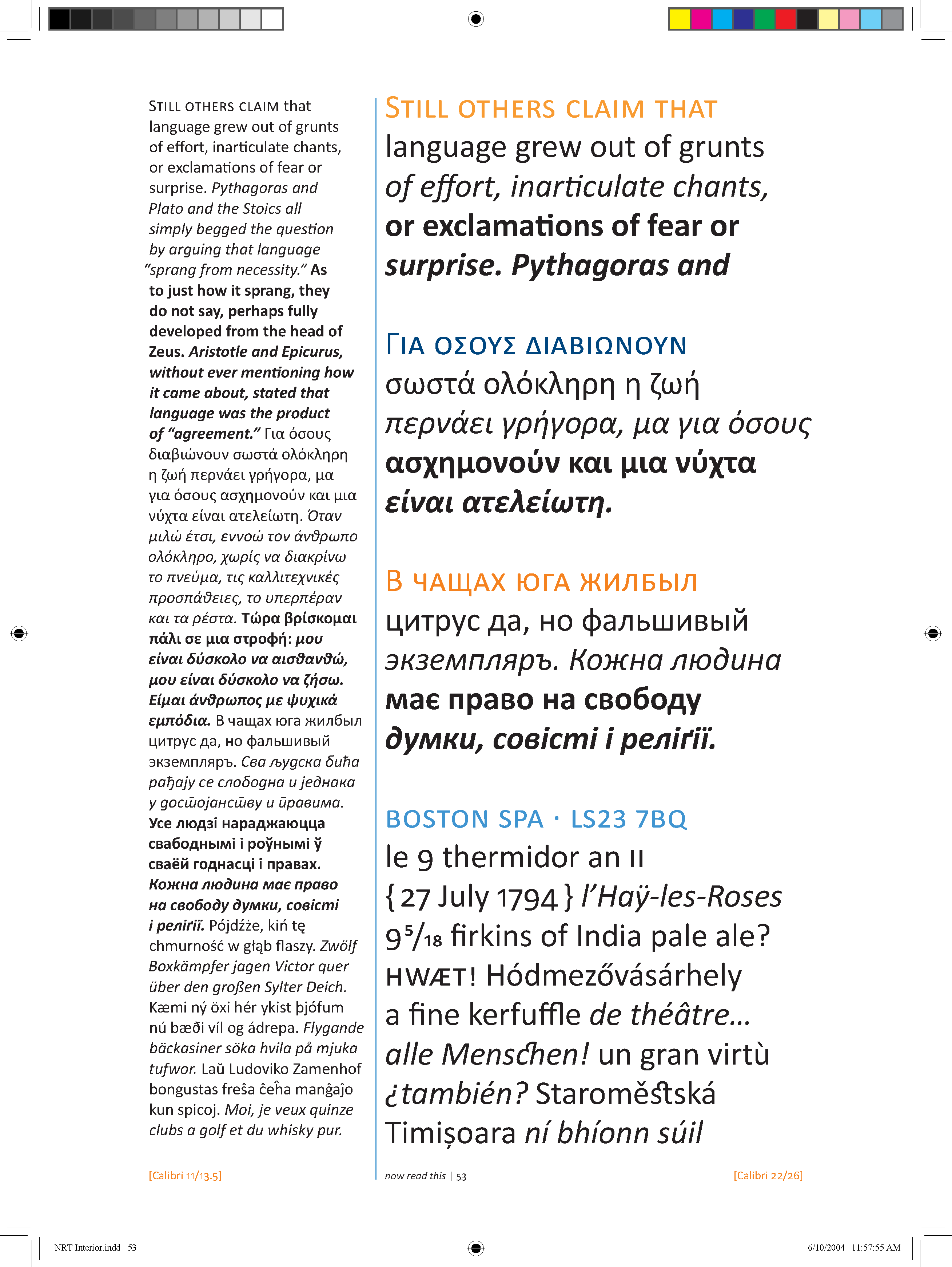 Typographic decisions should be made for a purpose. The Times of London chose the typeface Times New Roman to serve an audience looking for a quick read. Lawyers don’t want their audience to read fast and throw the document away; they want to maximize retention. Achieving that goal requires a different approach — different typefaces, different column widths, different writing conventions. Briefs are like books rather than newspapers. The most important piece of advice we can offer is this: read some good books and try to make your briefs more like them.