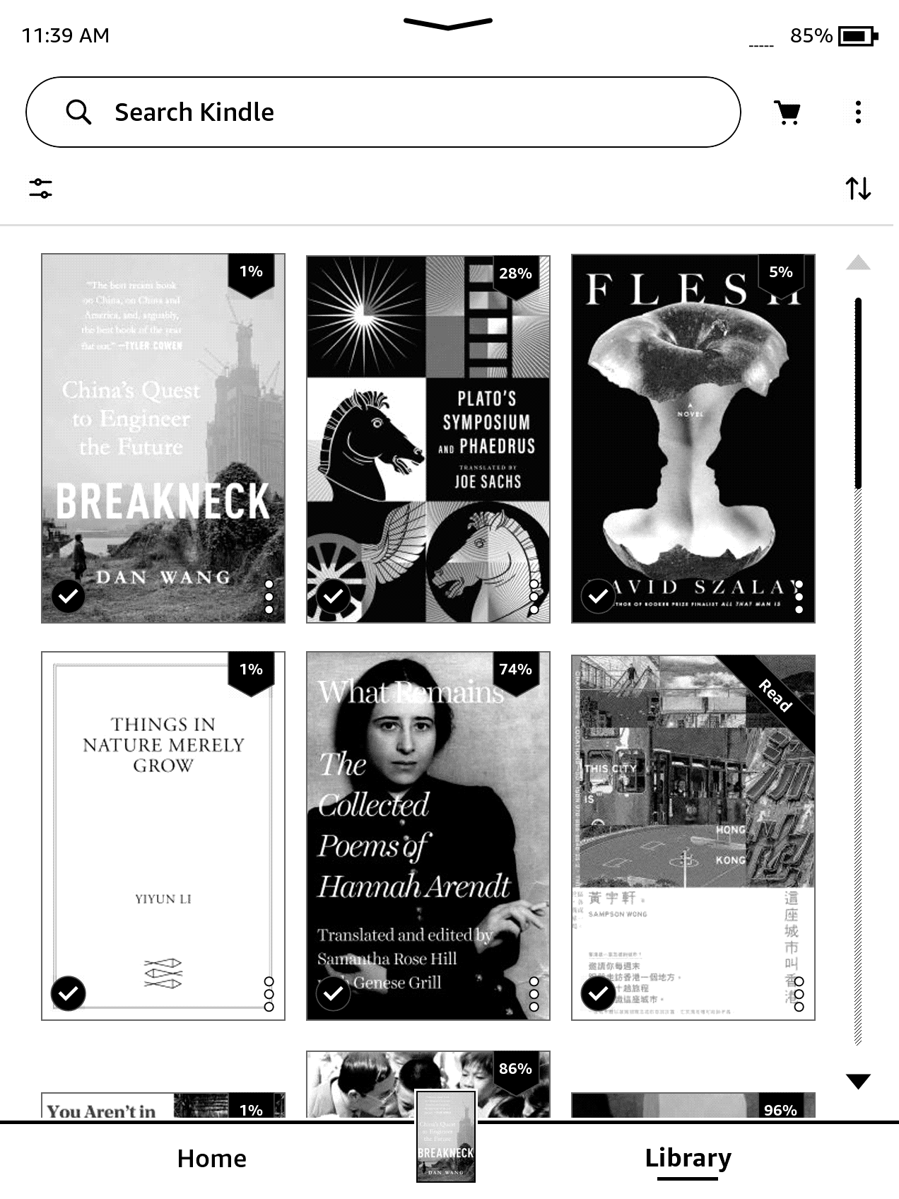 (当然也有退步,尤其是现在连接电脑后不再显示为磁盘,传输文件麻烦了很多。不过也没必要安装官方的 Send to Kindle 工具,用任何支持 MTP 协议的工具即可,例如开源的 OpenMTP。)