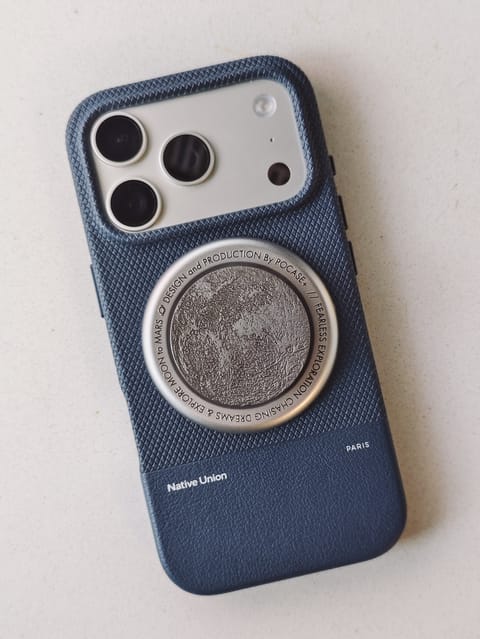 Photos 2025-10-23 MagSafe grips from POCASE 破壳; MagSafe cases from Apple and Native Union, respectively.