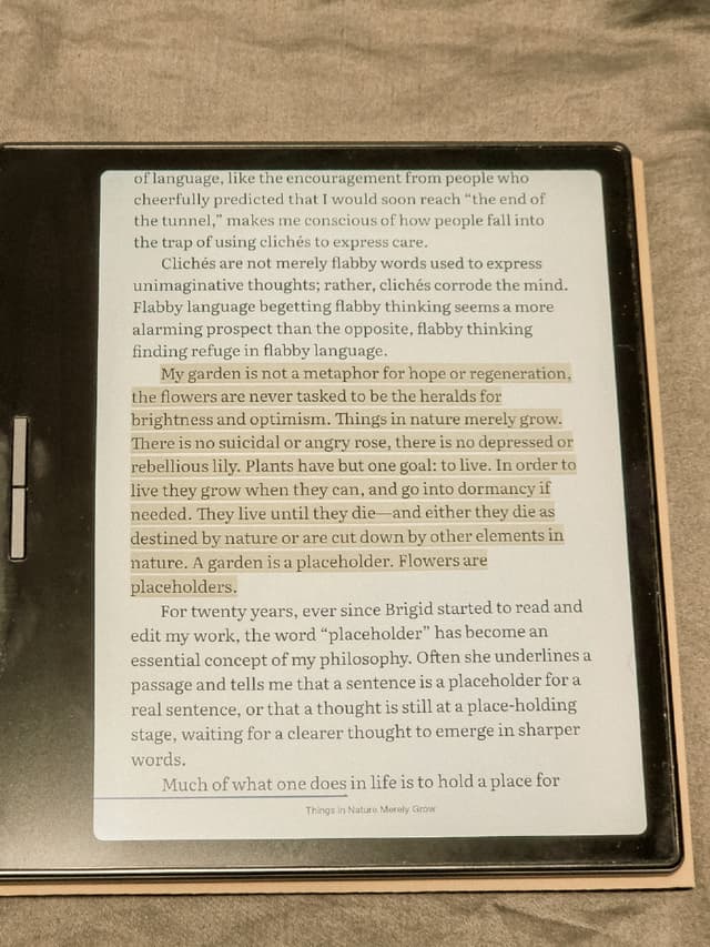 “Things in nature merely grow. There is no suicidal or angry rose, there is no depressed or rebellious lily. […] A garden is a placeholder. Flowers are placeholders.”