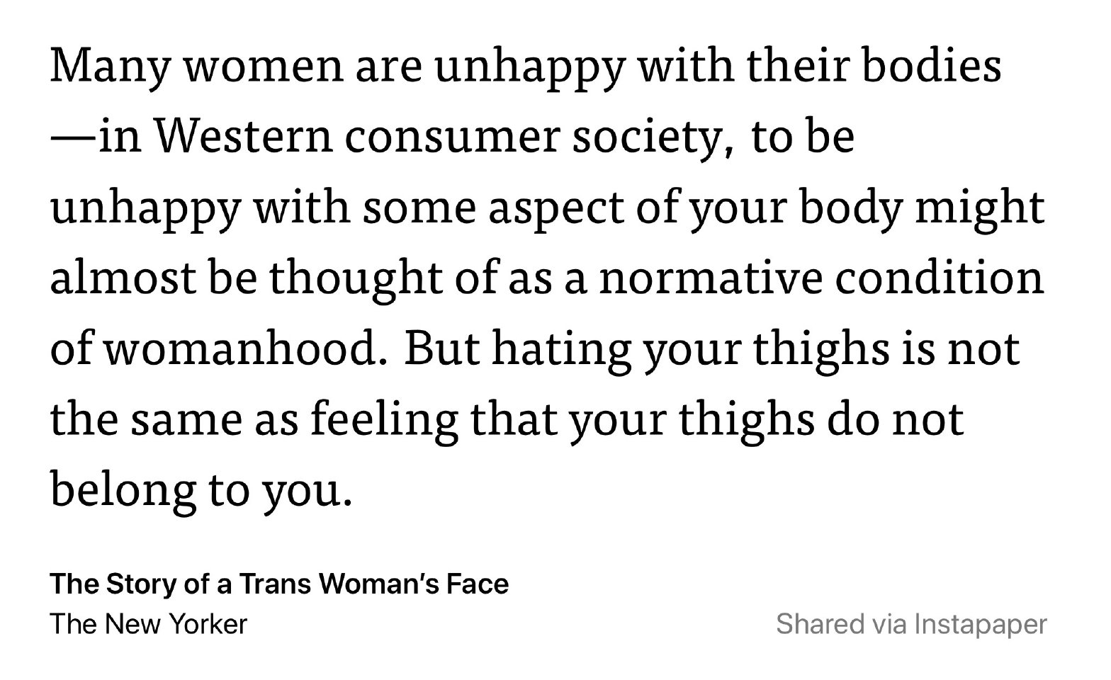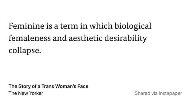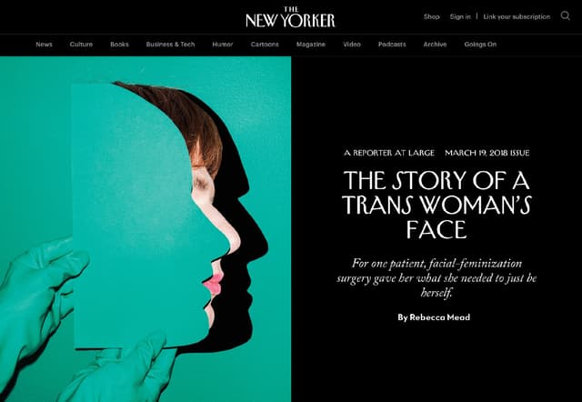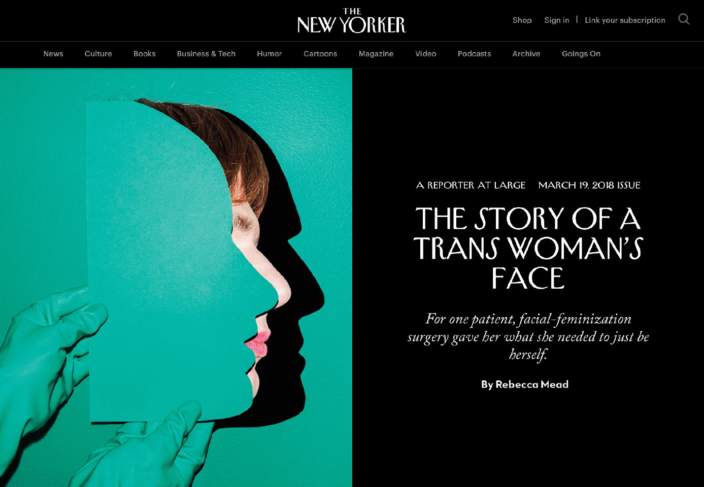 一直觉得 NYer 还是那些不扯政治的内容最好看 这篇应该是今年以来目前最佳了 一个手术硬是给写出来了电影的感觉 | The Story of a Trans Woman’s Face https://go.cyhsu.xyz/2FVVLlX