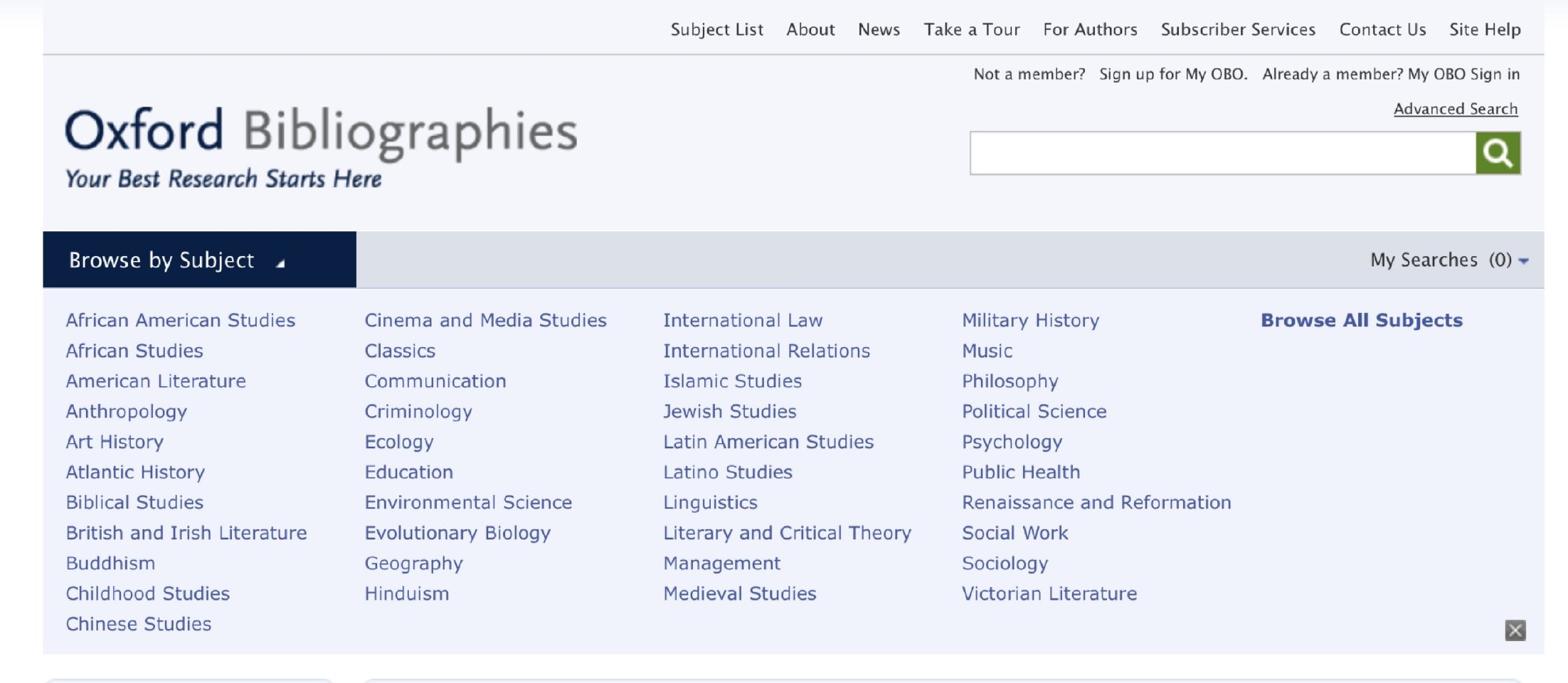 每次跟图书馆员问问题都能发现新大陆 | Oxford Bibliographies - Your Best Research Starts Here - obo https://www.oxfordbibliographies.com/