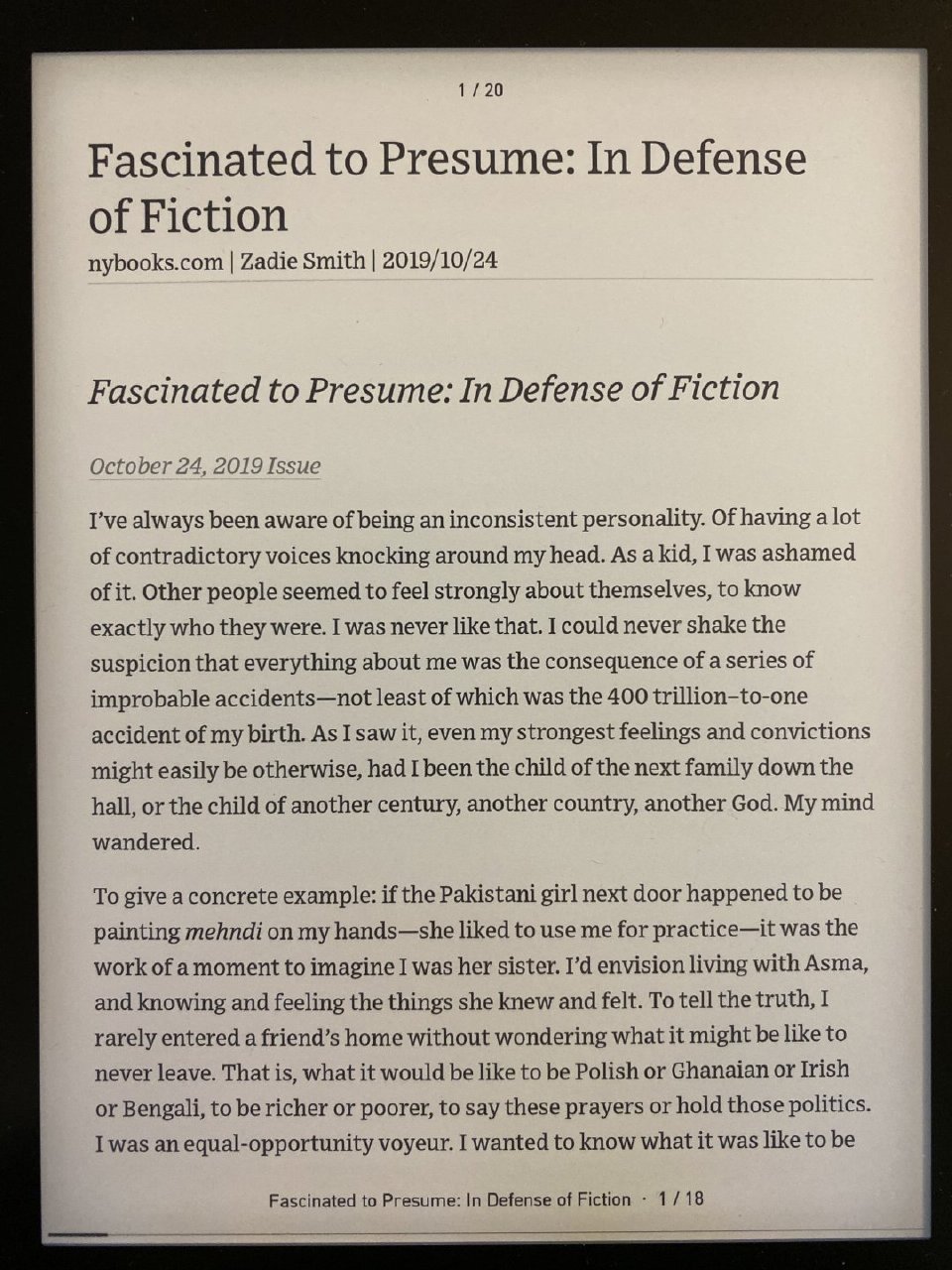 寻找适合 e-ink 屏幕字体的一种(不太厚道)的思路:打开 APKPure 下载各类新闻媒体/阅读类 app 的安装包,从里面(一般是 /assets/fonts)扒出来它们的定制字体,一般都比较适合长文阅读。示例:Imperial (NYTimes), Exchange (WSJ), Milo (Economist), Blanco (Pocket), Tisa (Instapaper), Literata (Play Books)