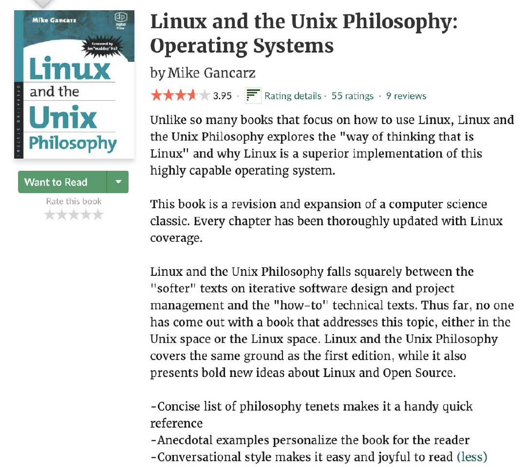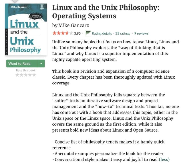 Linux and the Unix Philosophy: Operating Systems by Mike Gancarz https://www.goodreads.com/book/show/2084939.Linux_and_the_Unix_Philosophy