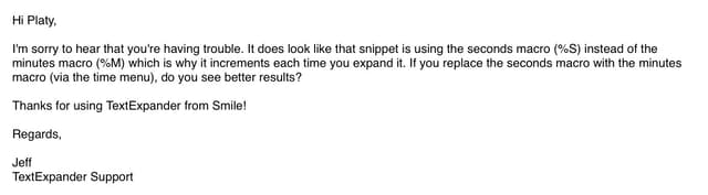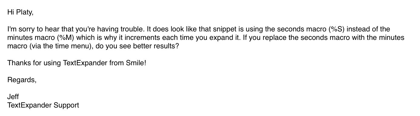 太丢人了,用 TextExpander 做了一个打时间戳的 snippet,结果发现输出的时间完全不准,每次打出来的分钟数都不一样 以为发现了一个 bug,煞有介事地和客服邮件几个来回以后,对方说你把 snippet 发给我看看 然后回复说 大哥 你是不是把分钟数 %M 写成了秒数 %S 了 ……
