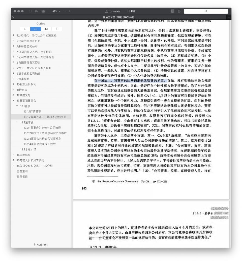 上面说 你去总结一下董事长的权利和义务 我默默翻出了私藏的 DF 版普通公司法 准备开始抄 但马上就后悔了 因为想起来从他的书可以很好地知道特拉华有什么 但只能知道中国缺什么 果不其然
