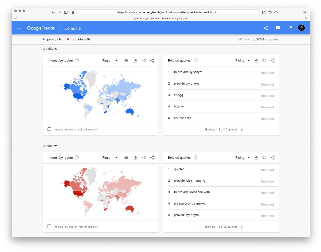 其实 Google 比 thesaurus 词典更适合治疗翻译选择困难症 遇到拿不准的 先用 Ngram 看一眼 21 世纪以前的人怎么用 再用 Google Trends 看一眼 21 世纪以后的人怎么用 基本就解决了