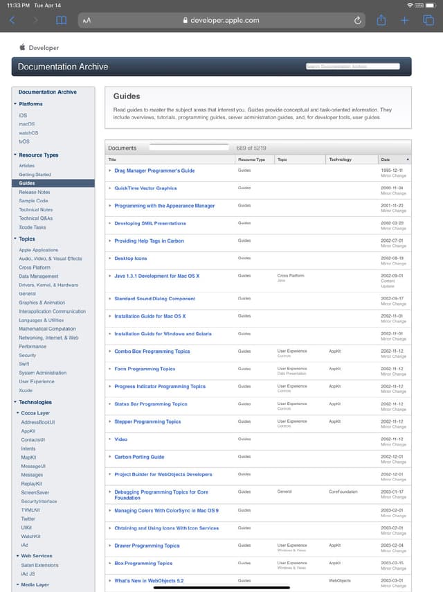 感叹一下 Apple Developer 里的 Documentation Archive 也是个宝 就算不懂代码翻翻也很涨姿势 相比之下现在的文档就不怎么看到写得这么认真的 (巨硬在这方面反而挺好的