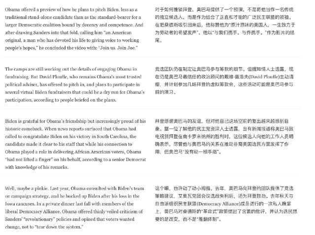 观赏 NYT 中文版的翻译已经成为一种找乐子的方式了 American original = 原汁原味的美国人(美国人是可食用的吗?) virtual fundraiser = 虚拟筹款会(就是说是假的吗?) well = 这个嘛(这个是哪个嘛?) thinly veiled = 含蓄的(wtf?)