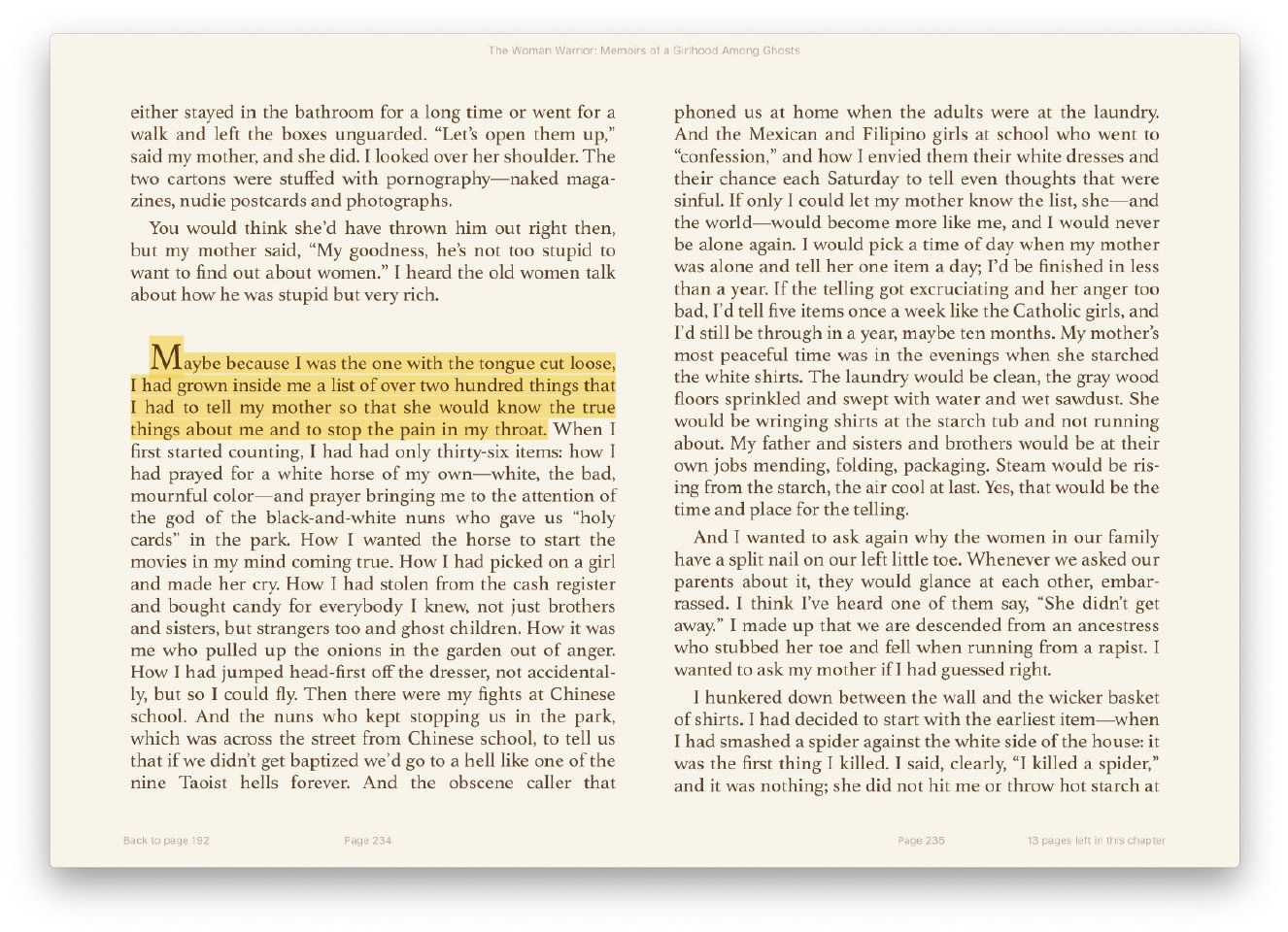 Excerpt From: Maxine Hong Kingston. “The Woman Warrior: Memoirs of a Girlhood Among Ghosts.”
