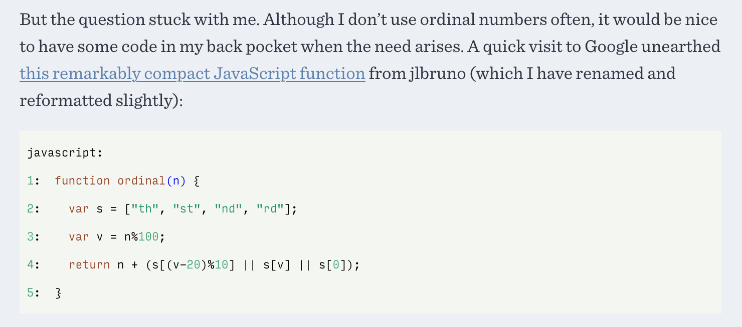 这个是真的很聪明了 | Ordinal numerals and JavaScript - All this https://t.cn/A6LDNzhh