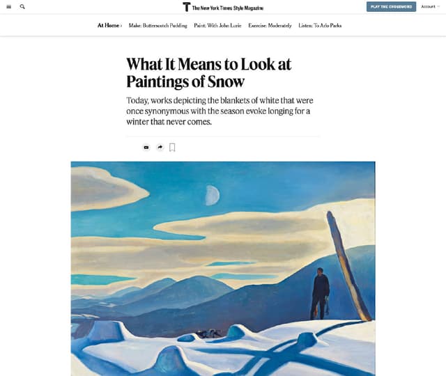 These works also give us an emotional registry of the feelings — smallness, sublimity, foreboding, tranquillity — that snow evokes. Paint’s qualities — density, fluidity, the ability to be layered — can make it inherently mimetic of snow, as with the ridges visible in Gallace’s brushwork. The physical hardship of painting in frigid plein air was treated as a test of endurance, fortitude and perhaps masculinity.