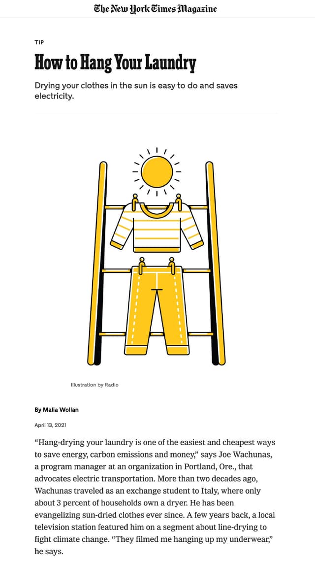 | How to Hang Your Laundry in the Sun and Save Electricity - The New York Times https://www.nytimes.com/2021/04/13/magazine/hang-dry-laundry.html