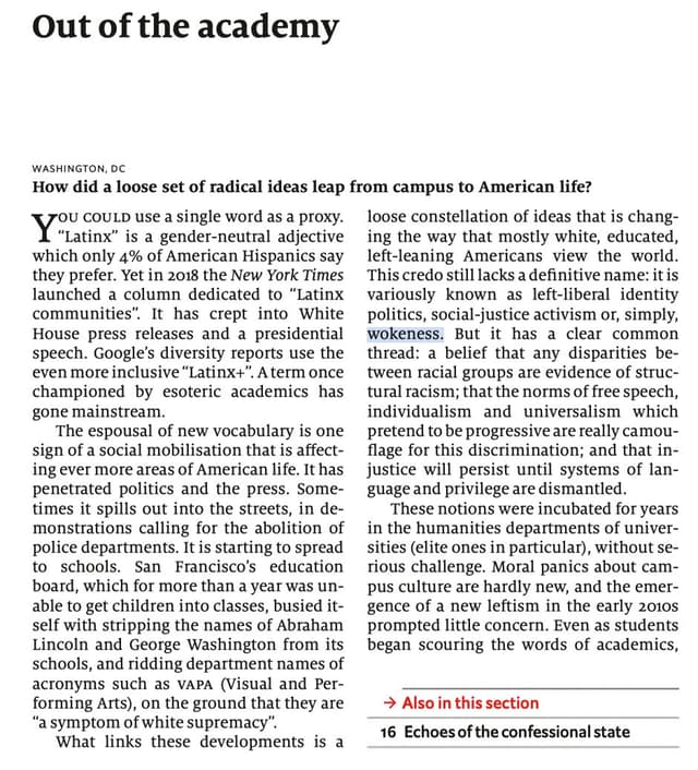 《炮打白左——The Economist 的一篇大字报》 (至少学到了 wokeness 这个地道翻译