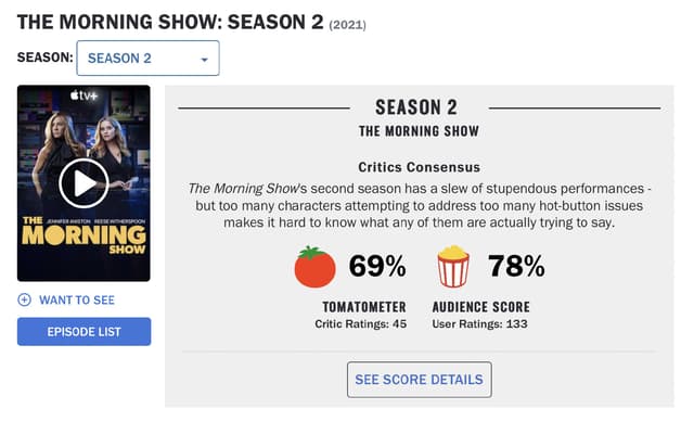 Call me naïve or amateur but I sincerely don't think the Morning Show esp. the Season 2 has received its due, preferable reviews. Yes the show's depictions of the cancel culture, the “woke”-ness, and the twists and dynamics within a media corp. are over dramatized at times, and the staging and production are somewhat show-off of AAPL's $$ power; but the currentness itself is valuable and worth applauding.