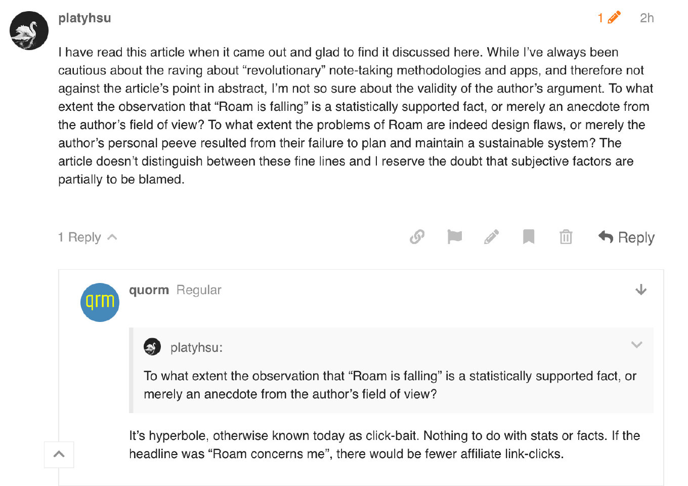 转贴一个发在别处的评论。上周看到这篇张口就来的文章,基本就确信这个 Every 并不能写出什么每年值 200 刀名堂了,有这个闲钱建议去订 The Information 都是好的 The Fall of Roam - Superorganizers - Every