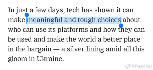 Opinion | Tech Offers a Silver Lining in Ukraine - The New York Times https://www.nytimes.com/2022/03/03/opinion/ukraine-russia-platforms-tech.html