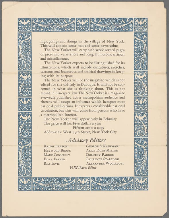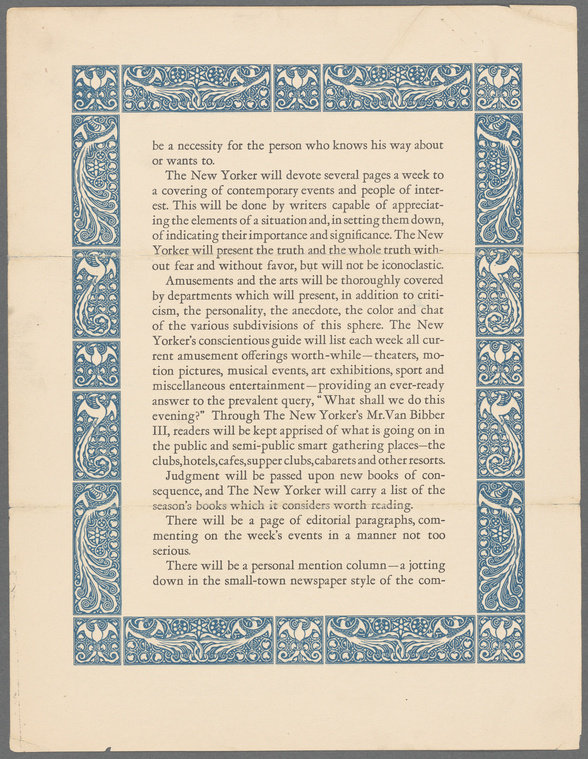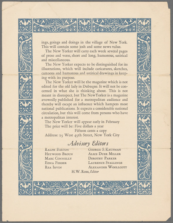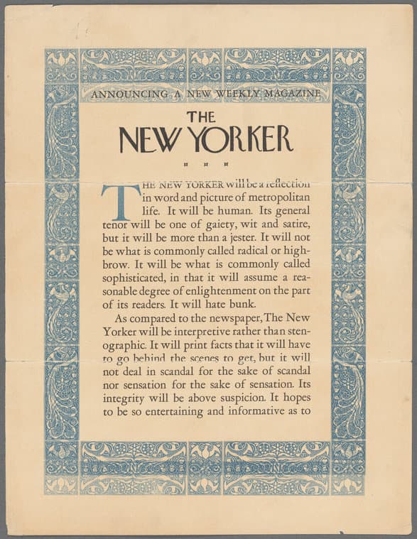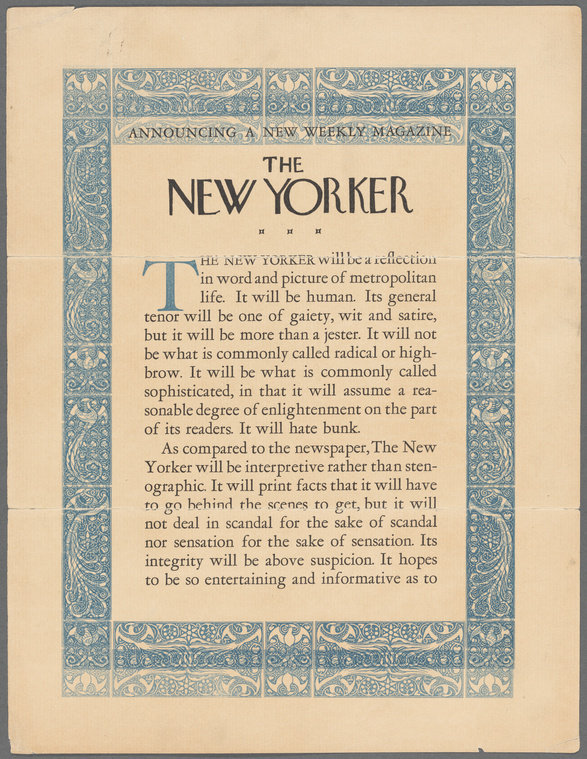 翻到纽约客 1924 年的发刊词,ages so well