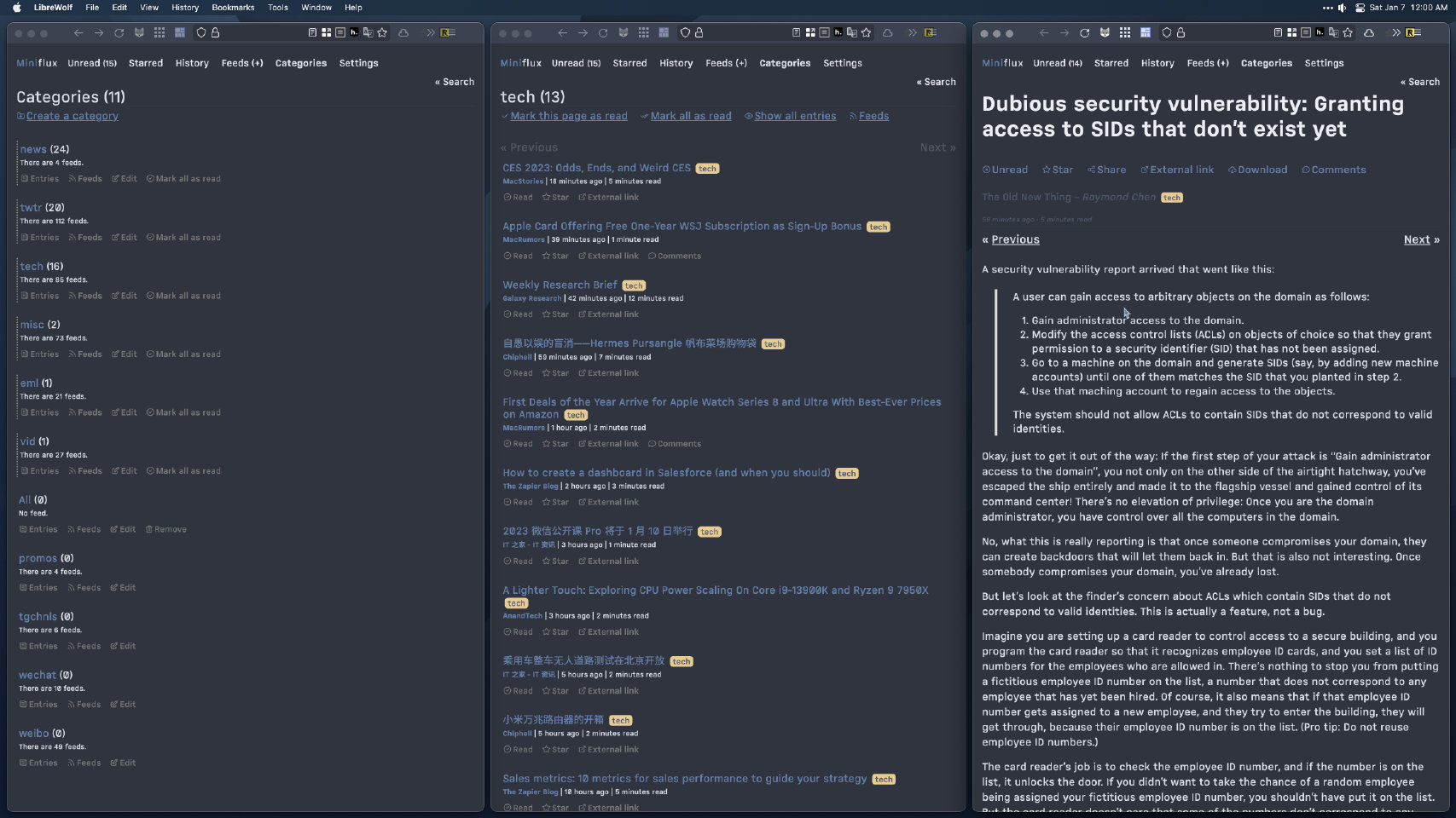 Miniflux 真的是现在最喜欢的 RSS 软件了,简单暴力反应快,Reeder 很久都没有打开了