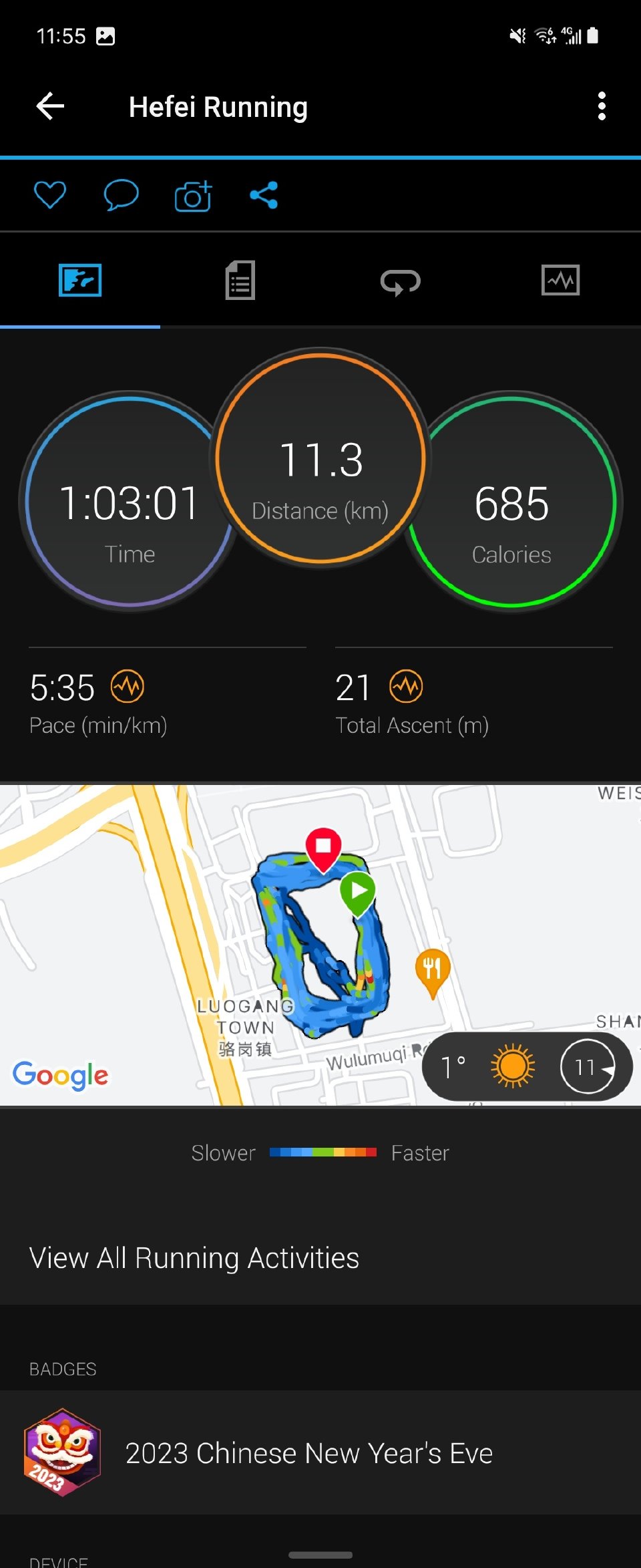 好久没有在零度附近跑过了 后悔穿多了