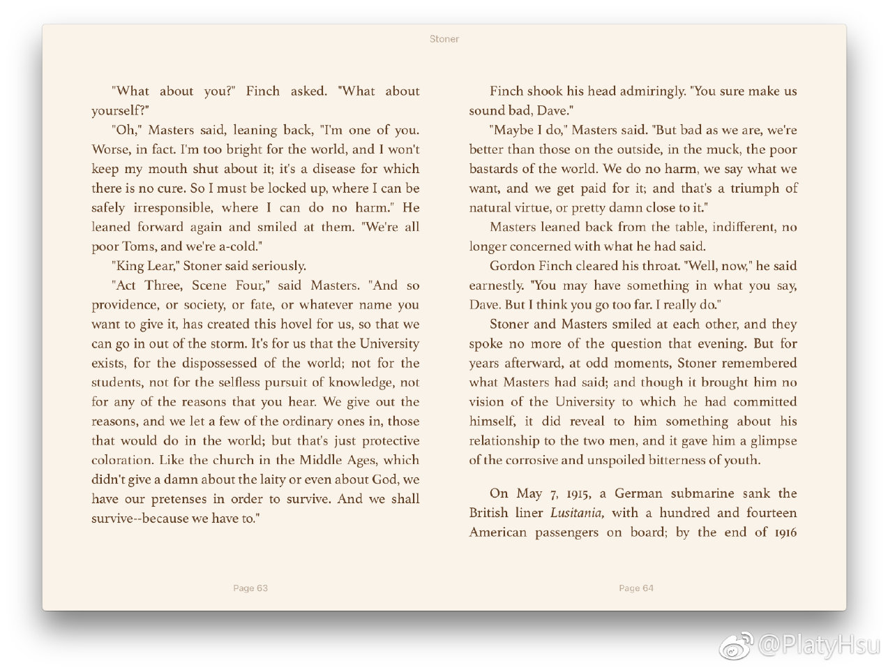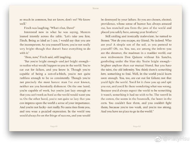 2018 年补的第一本虚构类 非常刻薄地嘲讽了象牙塔生态 | 斯通纳(豆瓣) https://t.cn/R8Y8I4T