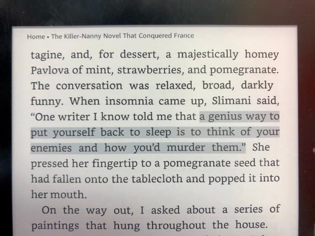 “When insomnia came up, a genius way to put yourself back to sleep is to think of your enemies and how you'd murder them.”