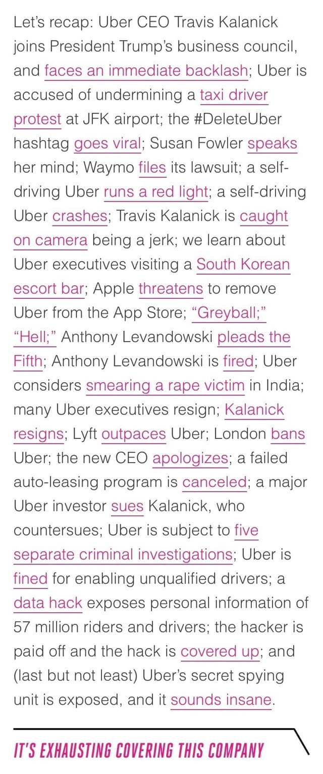 哈哈哈哈根本不忍心看好吗 | The Verge 2017 tech report card: Uber - The Verge https://www.theverge.com/2017/12/29/16820474/2017-tech-recap-uber-scandal-waymo-lawsuits-travis-kalanick