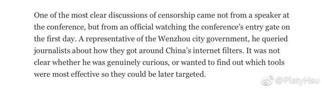 钓鱼执法一级 | Inside China’s Big Tech Conference, New Ways to Track Citizens - The New York Times https://www.nytimes.com/2017/12/05/business/china-internet-conference-wuzhen.html
