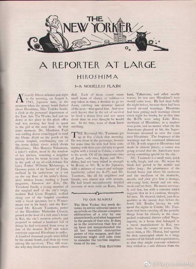 马着一个月以后看 (如果一个月以后就有空看的话[摊手]) http://www.newyorker.com/magazine/1946/08/31/hiroshima