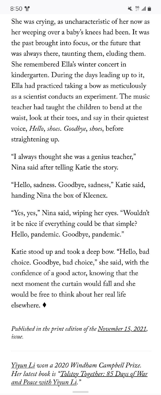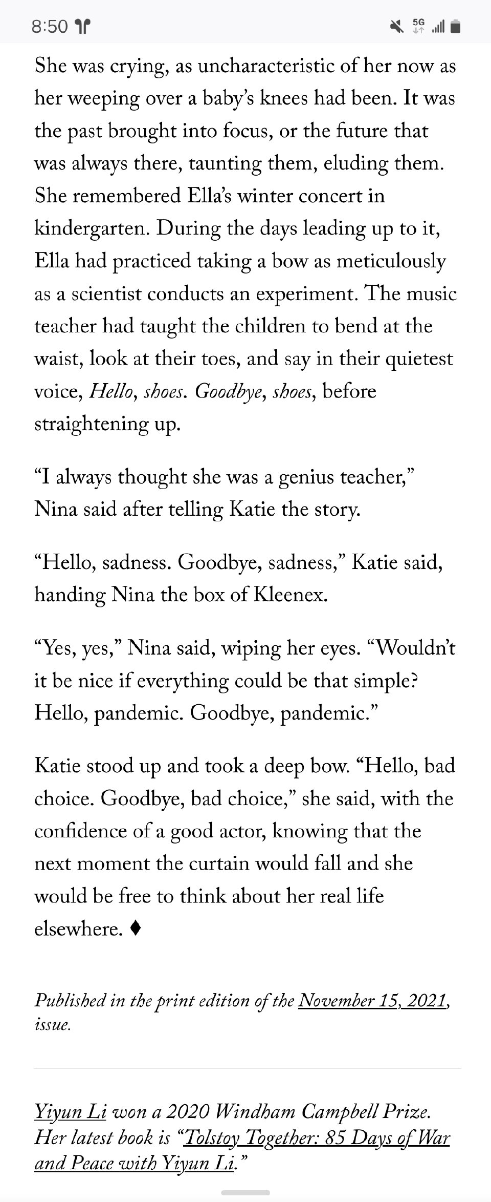 “The Seventy Percent” by Yiyun Li https://harpers.org/archive/2024/11/the-seventy-percent-yiyun-li/