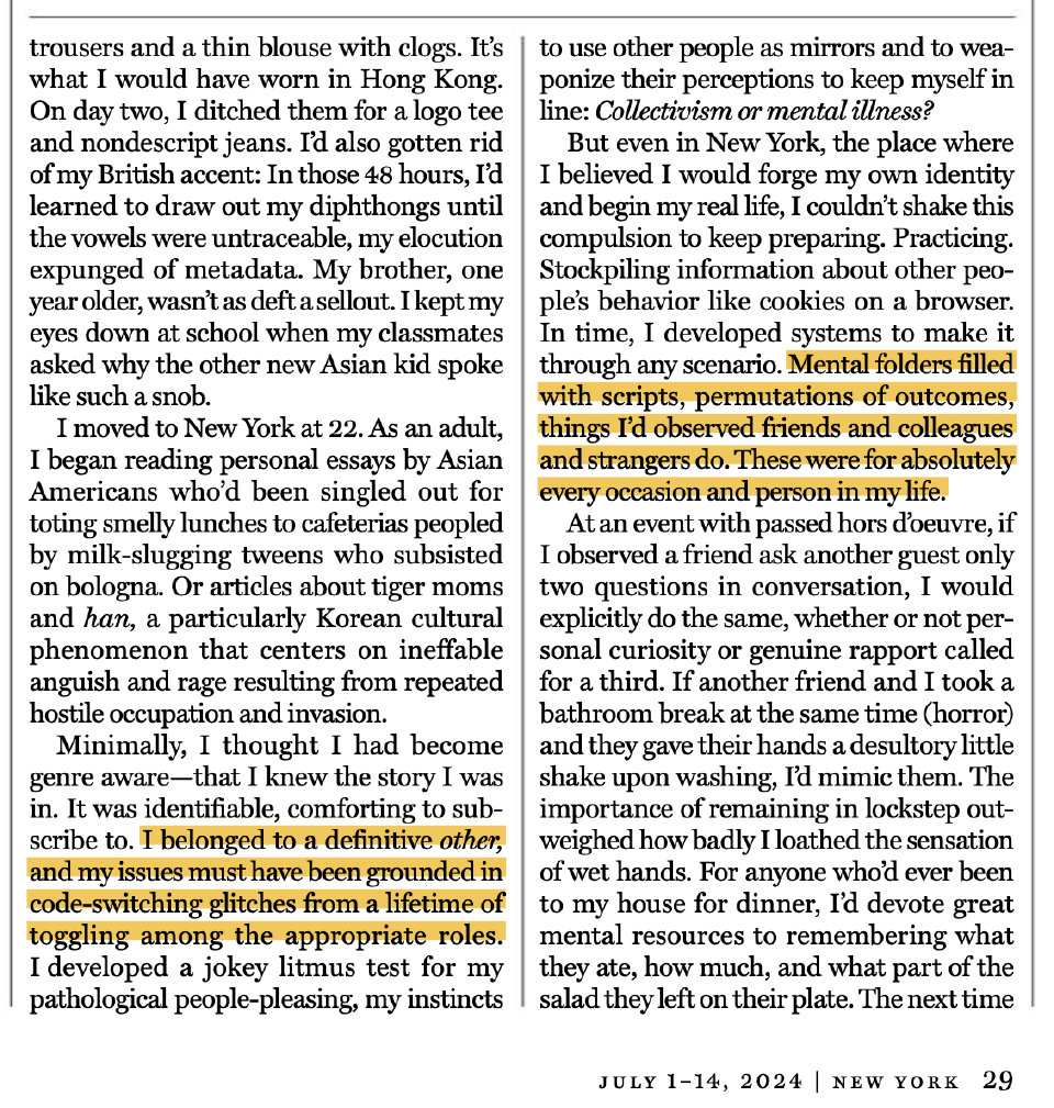 “Stockpiling information about other people’s behavior like cookies on a browser””Mental folders filled with scripts, permutations of outcomes” relatable af 🙃