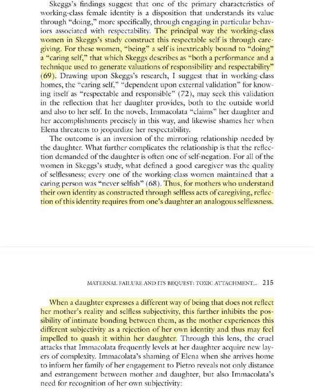 “[B]eing” a self is inextricably bound to “doing” a “caring self,” […] “both a performance and a technique used to generate valuations of responsibility and respectability.” […] [T]he mother experiences [a] different subjectivity as a rejection of her own identity and thus may feel impelled to quash it […].
