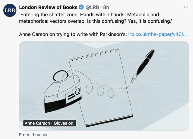 LRB 翻到篇帕金森症患病自述,一边想好会写但好惨,一边看名字发现是还在看着的书作者 🫠 https://archive.is/N8M22