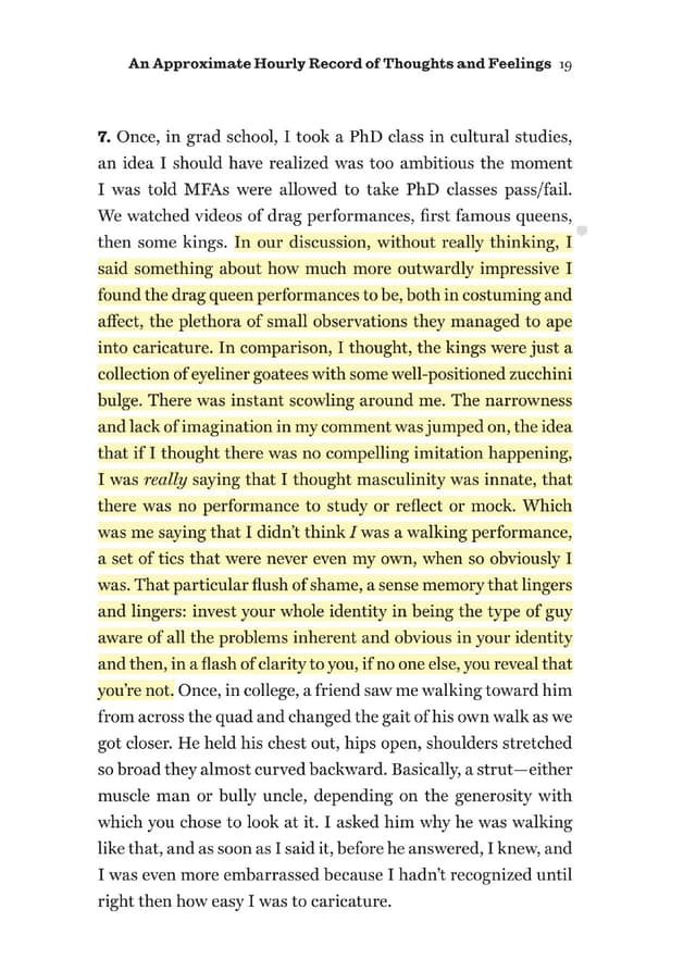 I didn’t think I was a walking performance, a set of tics that were never even my own, when so obviously I was. https://www.barrelhousemag.com/blog/issue-23-preview-an-approximate-hourly-record-of-thoughts-and-feelings-during-a-time-of-intense-sleep-deprivation-by-lucas-mann