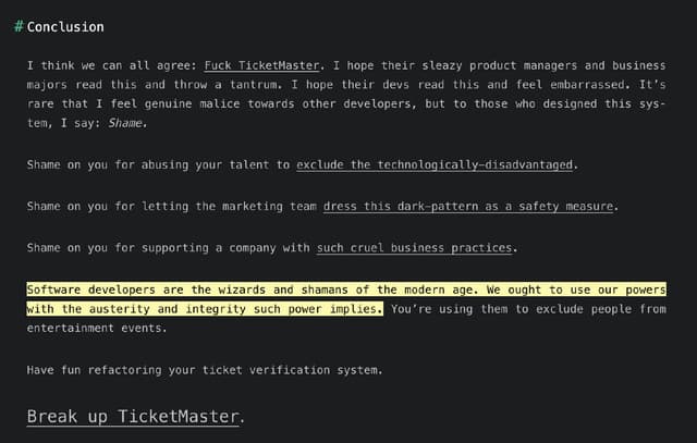 Software developers are the wizards and shamans of the modern age. We ought to use our powers with the austerity and integrity such power implies.
