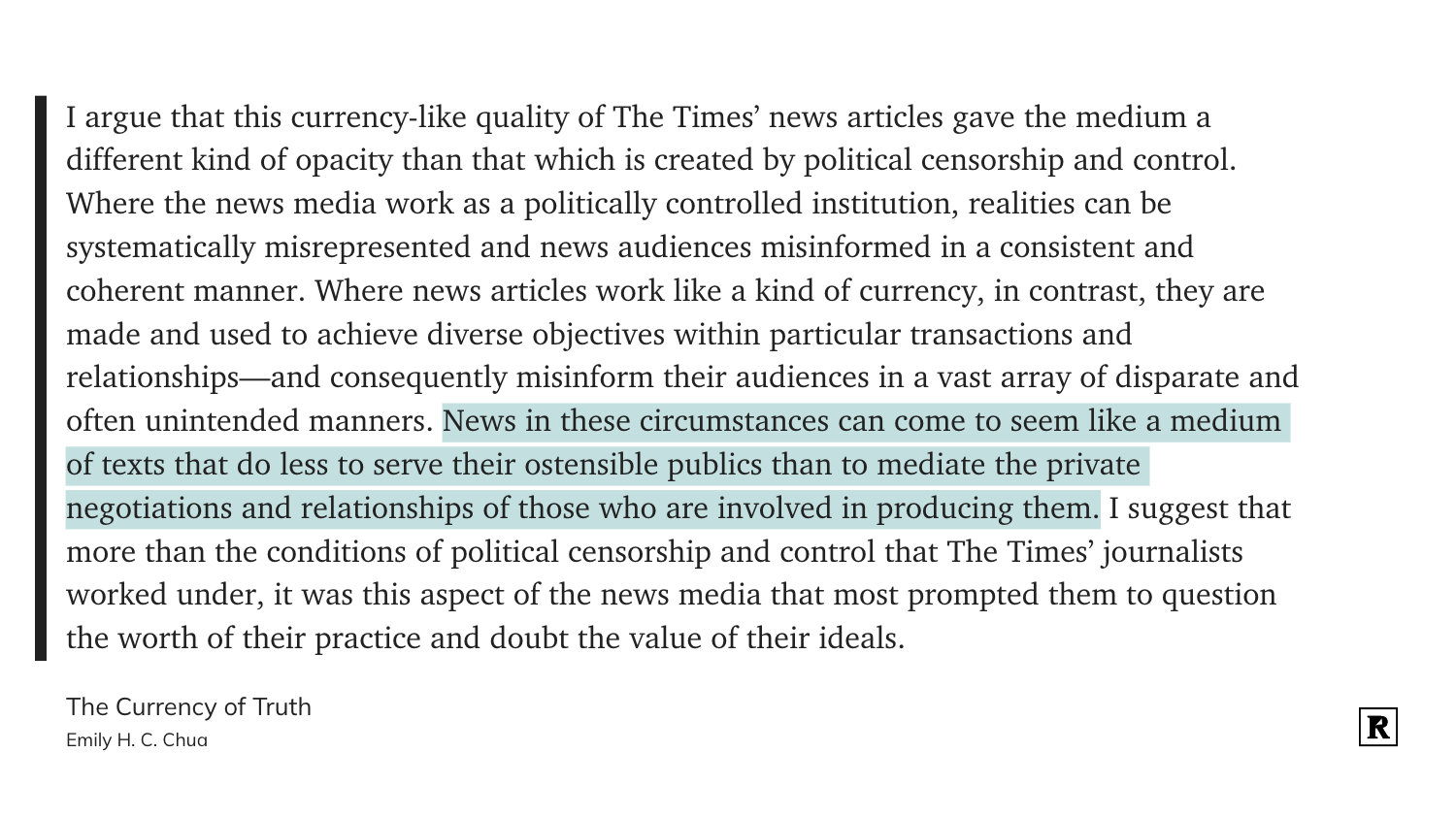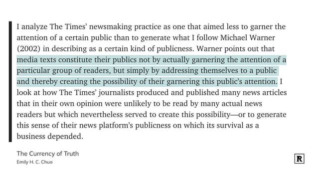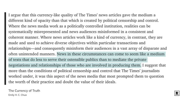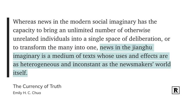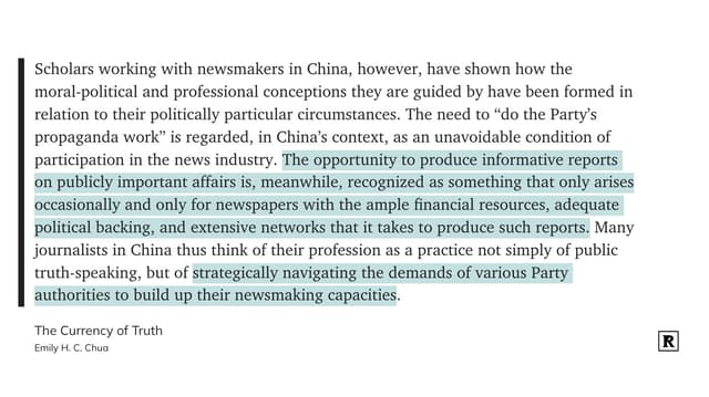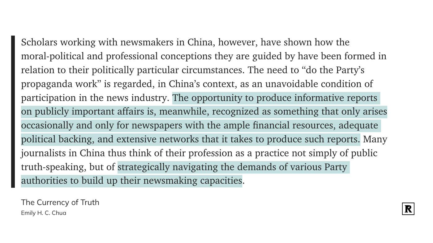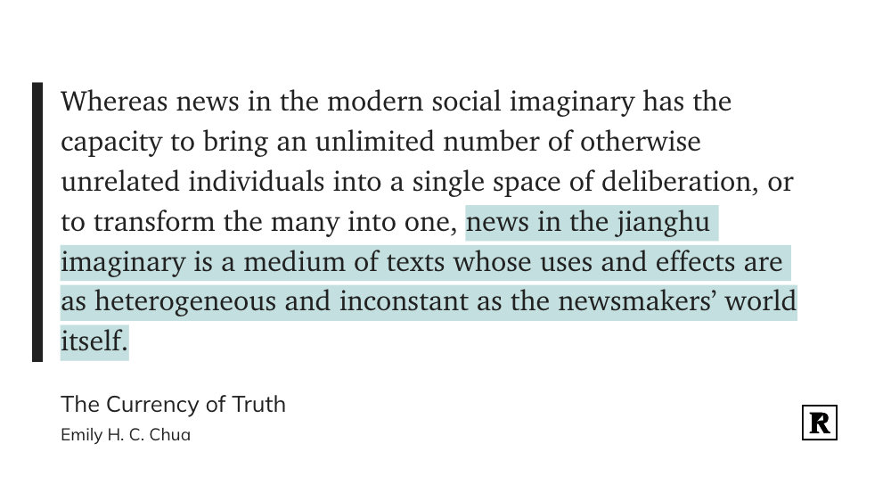 写得这么好的反而都是不要钱的 The Currency of Truth: Newsmaking and the Late-Socialist Imaginaries of China's Digital Era https://t.cn/A6lfytRz